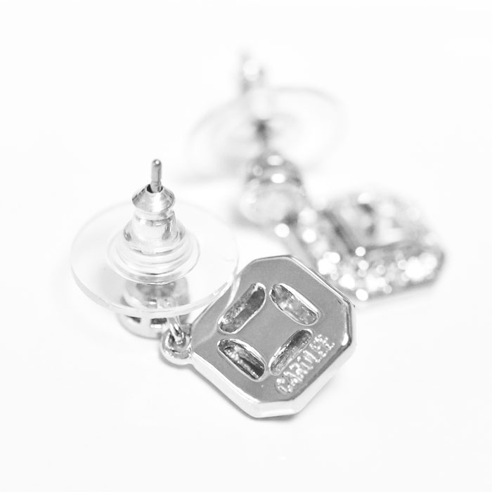 スクエアデザインのキュービックジルコニアがゆらゆら揺れるスタッズピアスです。